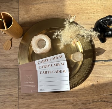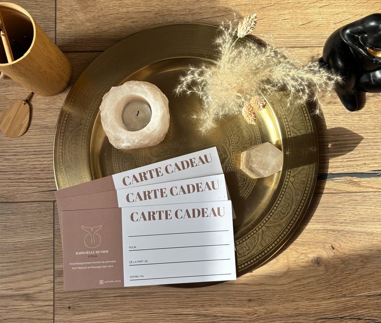 Avec ma carte cadeau personnalisée, offrez une séance d'accompagnement, un massage ou un soin Rebozo selon leurs besoins.